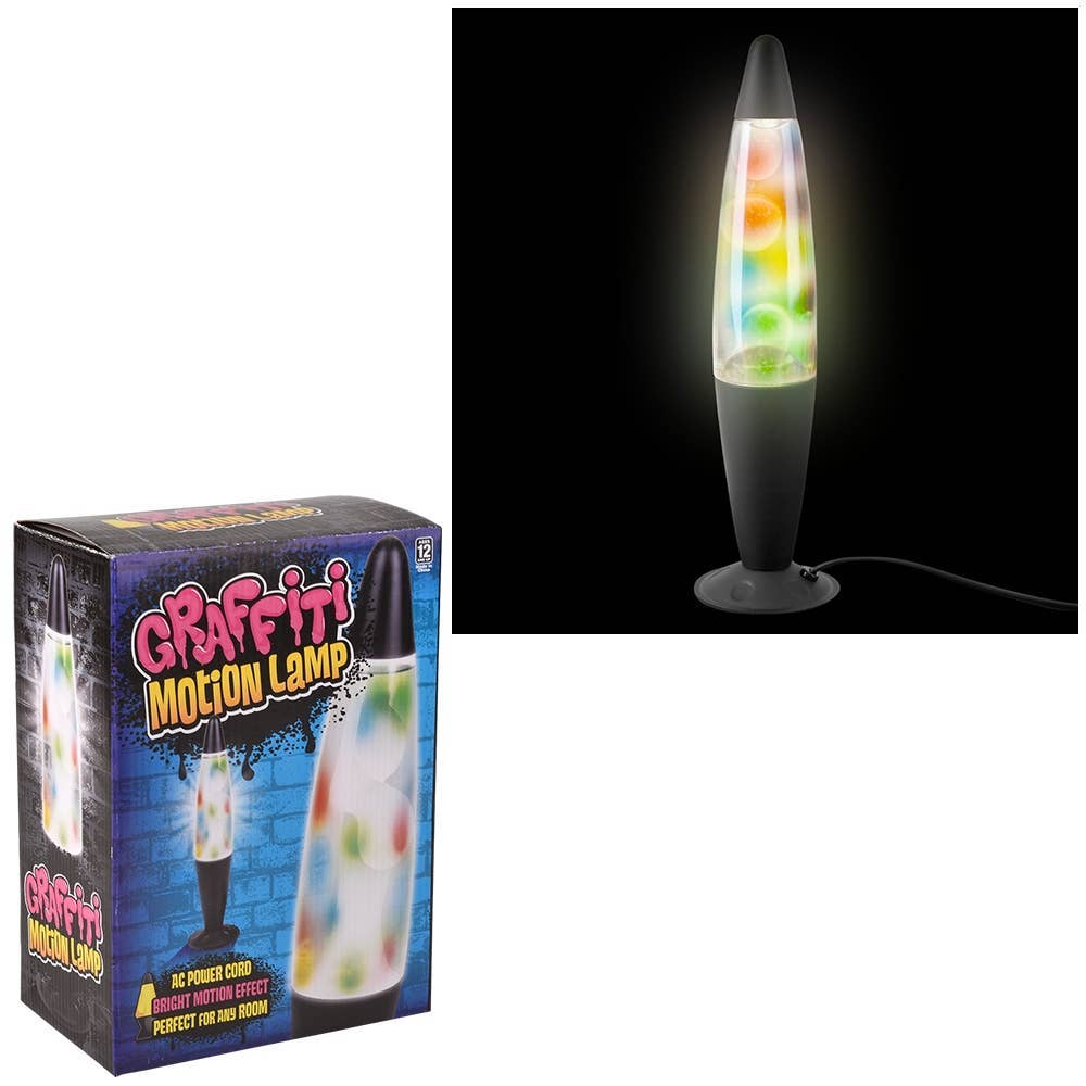 • Lava lamp with graffiti-like colors • Includes AC power cord • Great decor item • Sold by the piece • Each comes in a color box • Ages 12+
