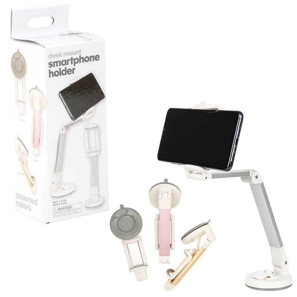 • 13" Smartphone Holder Desk Mount • Packaged in a colored box • Great redemption item • Product display: shelf item • 1 piece per unit • Ages 8+