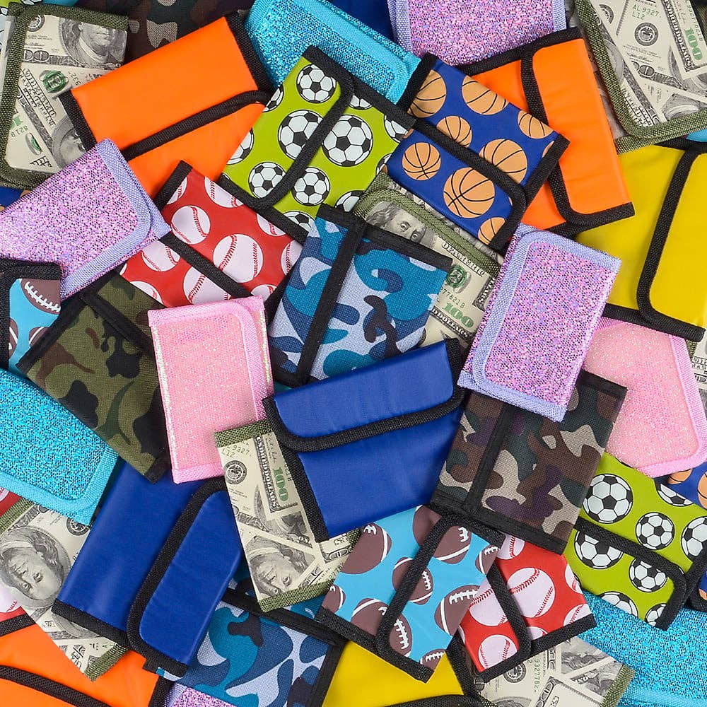 • Variety of small wallets • Great for storing cards and valuables • Assorted styles (may vary) • 48 pieces sold in a unit • Ages 3+