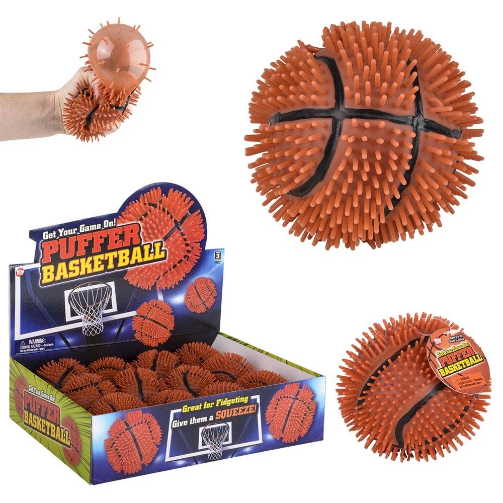 • Puffer Basketball 5" • Squeeze out the stress of the day! • Filled with air • Sold by the display • 12 pieces per display • Ages 3+