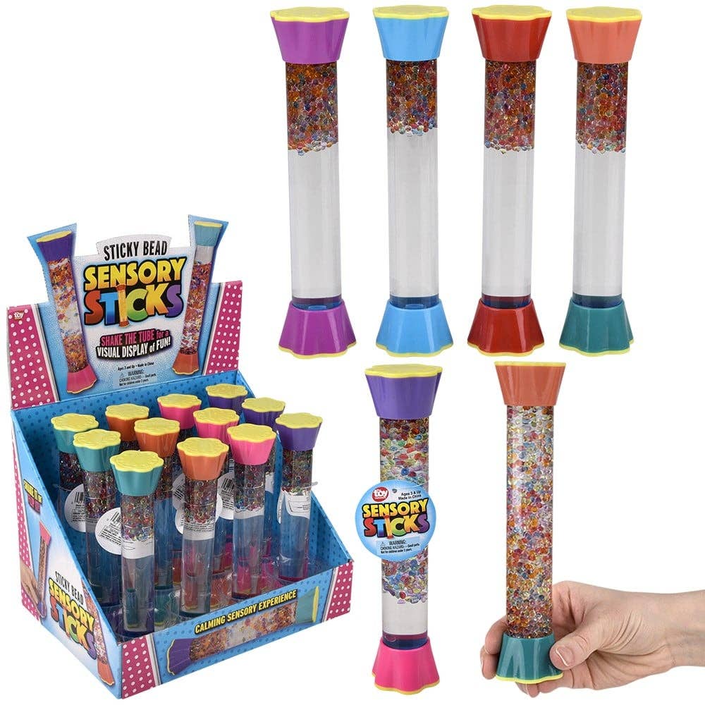 • Flip these water-filled tubes and watch the beads fall and stick together
