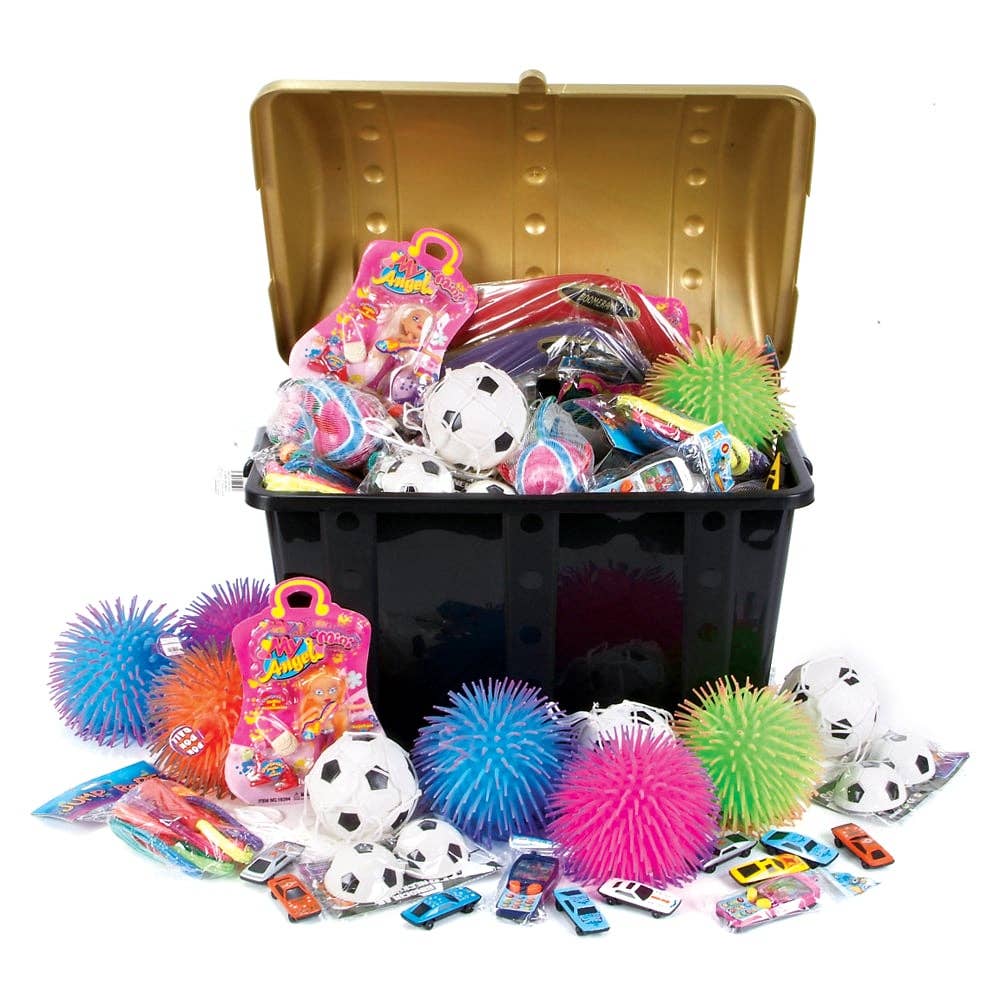 • PREMIUM TREASURE CHEST TOY ASSORTMENT • Great for prizes • Assortment may vary • 144 pieces per unit • Ages 5+