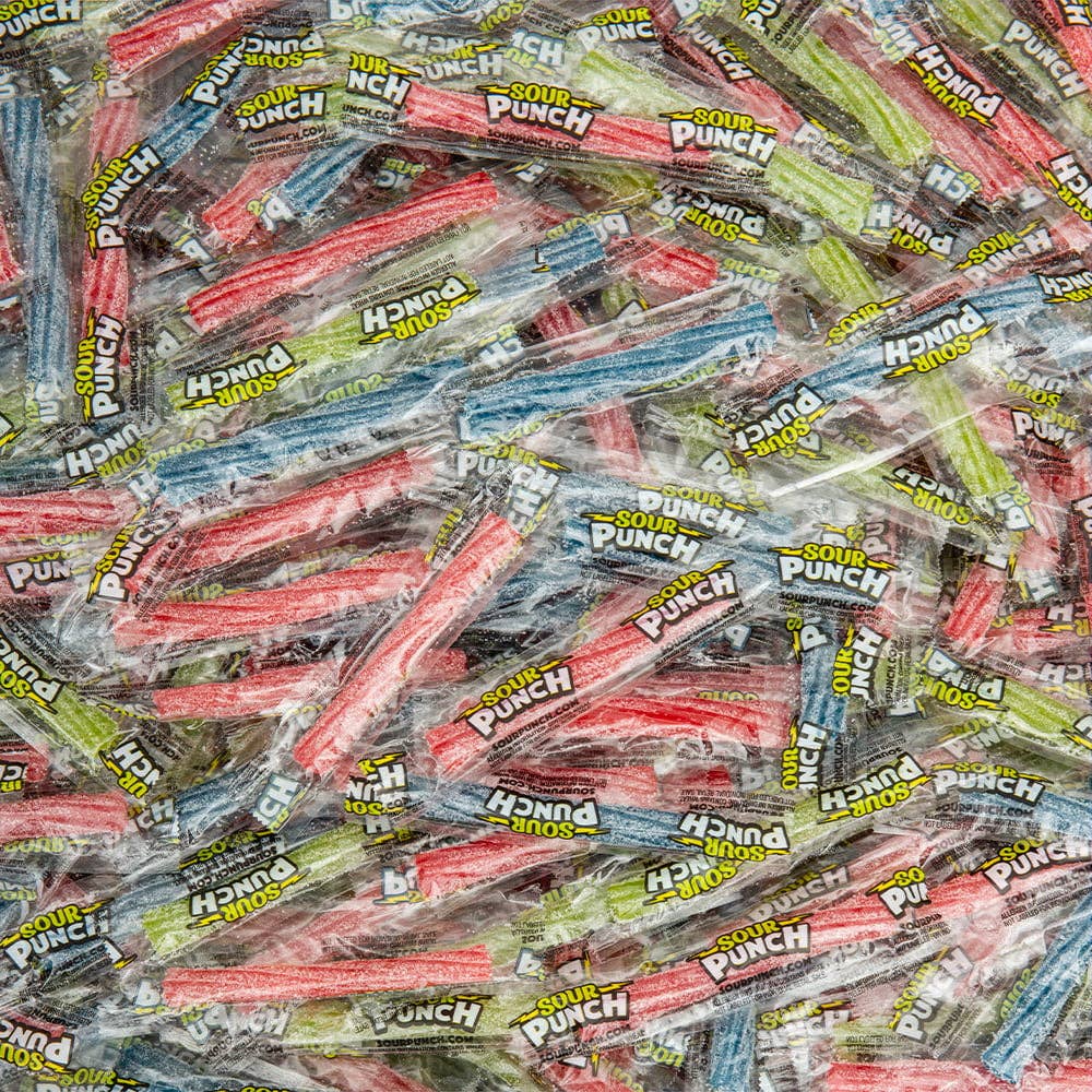 • Sour Punch Twists in bulk • Great for restocking candy • Assorted flavors • 1800 pieces sold in a case • Nonreturnable • Ages 3+