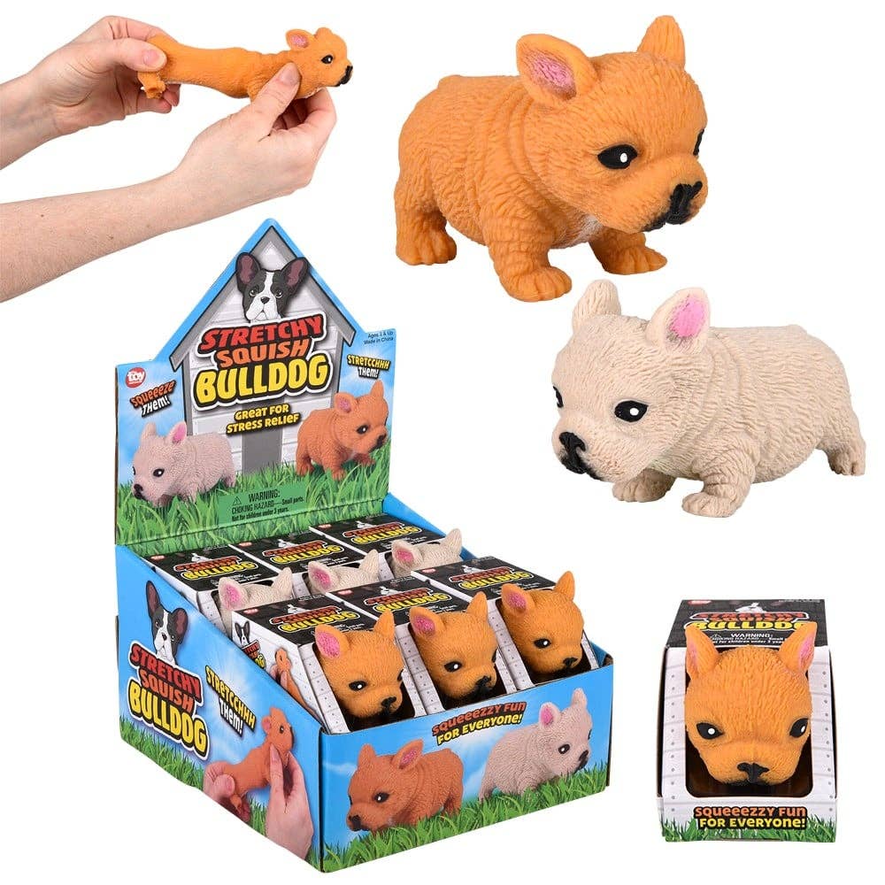 • Soft and stretchy bulldog toy • Great for fidgeting • Assorted colors • Each piece is in a color box • 12 pieces sold in a display • Ages 3+