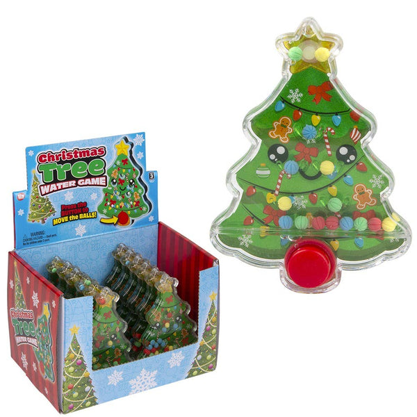 Christmas-tree themed water games Press the buttons to push the rings into the designated tube Great for travel 12 pieces sold in a display