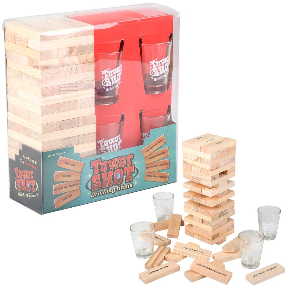 • 8" Tower Shot Game • Great prize • Comes with blocks and shot glasses • 1 Piece Per Unit/Order • Sold in Color Box • Ages 21+