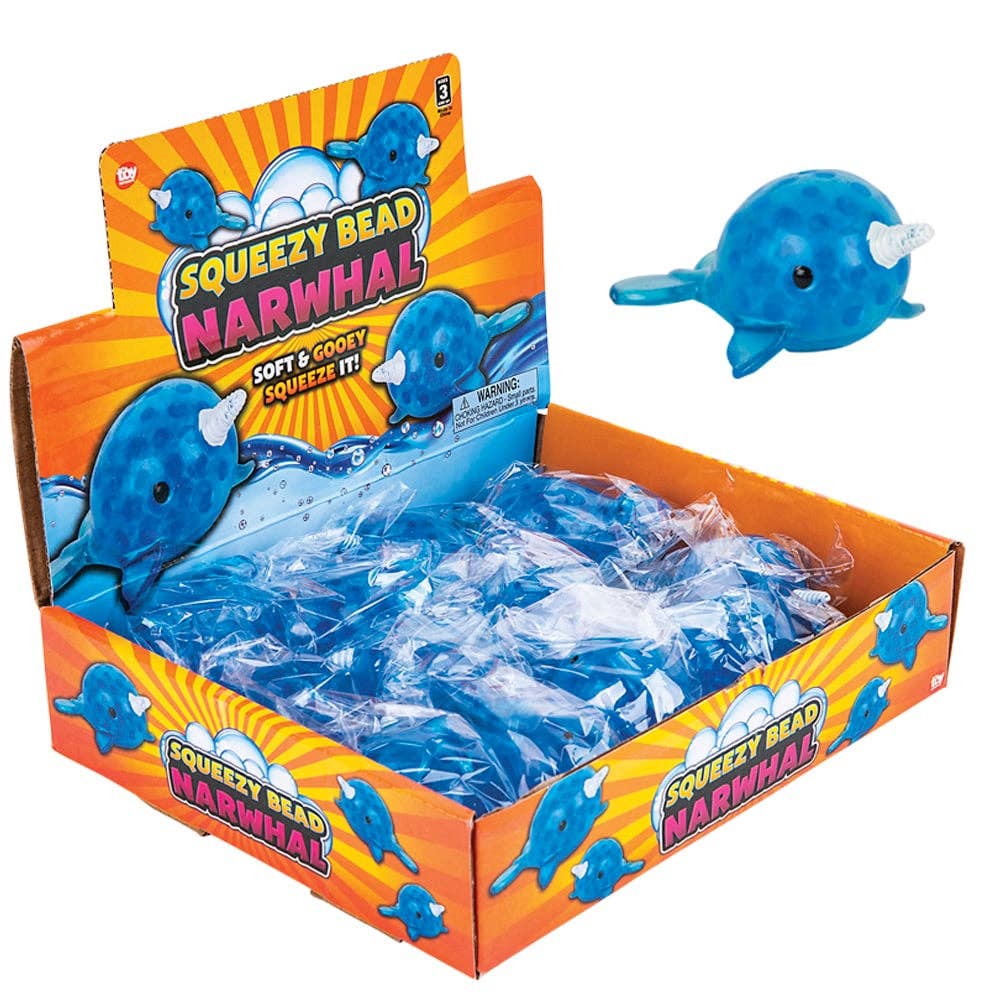 • Narwhal-themed fidgets with bead-filled insides • Great for fidgety hands • Each piece is in a poly bag • 12 pieces sold in a display • Ages 3+
