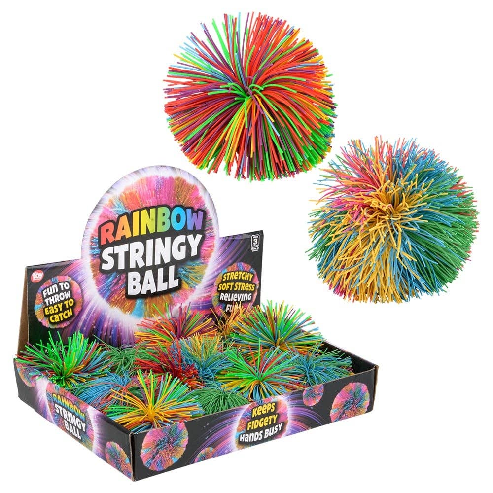 • Rainbow stringy balls great for fidgety hands • Assorted styles • Each piece comes with a hang tag • 12 pieces sold per display • Ages 3+