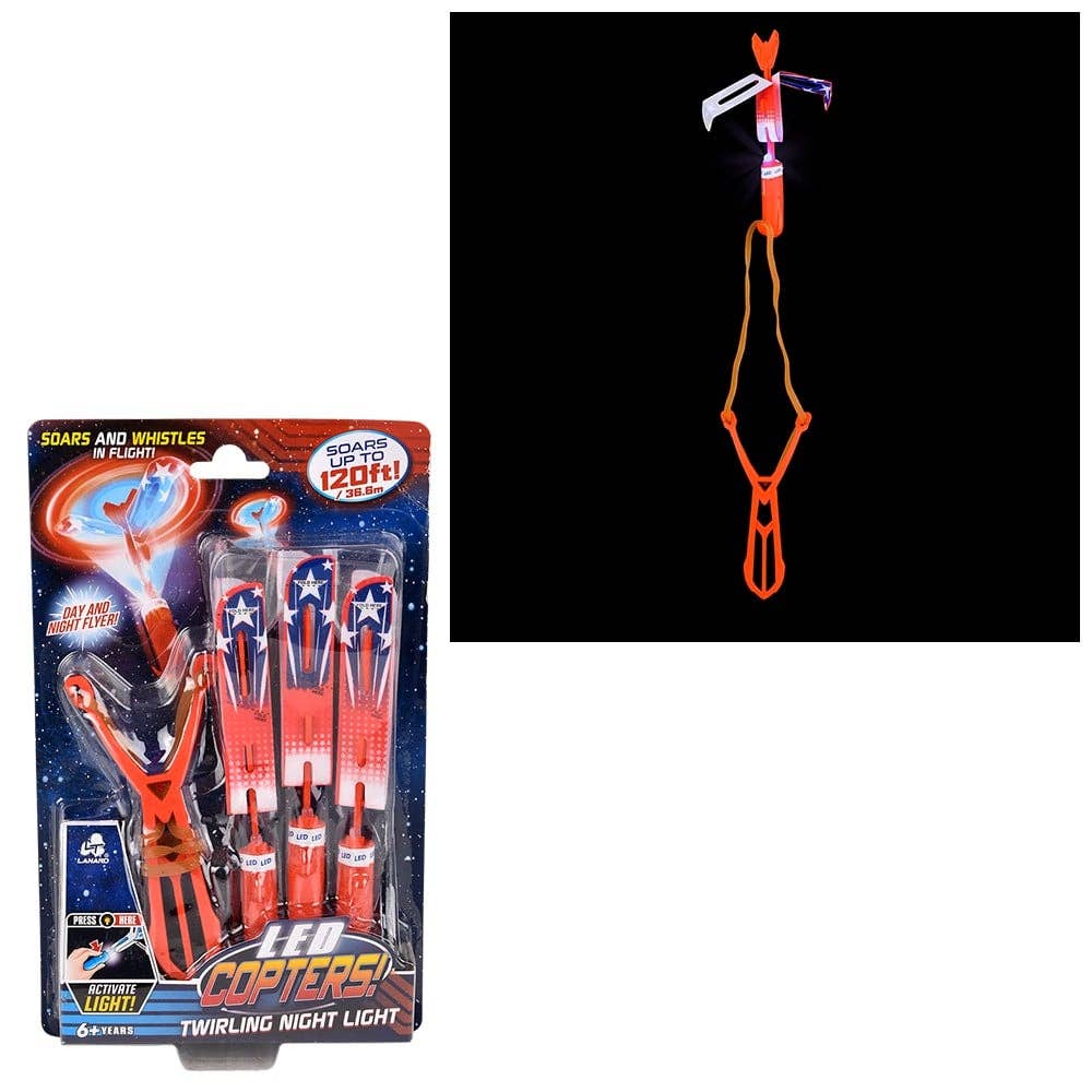 • Stunt Flyers from Lanard with LED lights • Soars up to 120 feet • Great for outdoor play • Sold by the piece on a blister card • Ages 6+