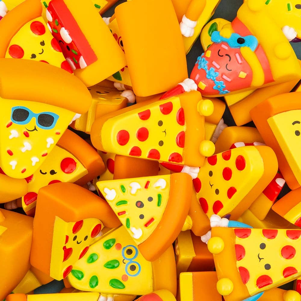 • Mini rubber pizzas in assorted designs • Great small crane prize options • Assorted styles may vary • 50 pieces sold in a poly bag • Ages 3+