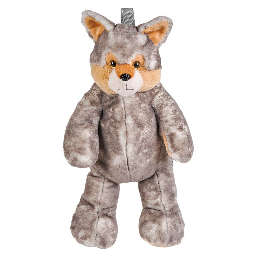 • Soft plush wolf backpack with plastic eyes