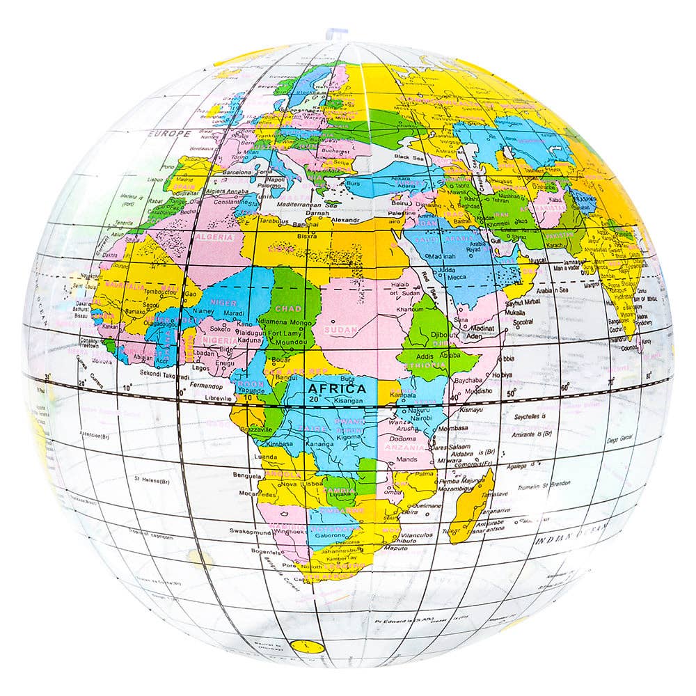 • Clear globe inflatables • Great for classroom settings • Each piece is in a poly bag • Sold by the dozen in a large poly bag • Ages 3+