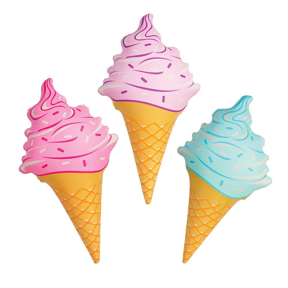 • Large inflatable ice cream cones • Great carnival prize options • Assorted colors • Sold by the dozen in a poly bag • Ages 3+