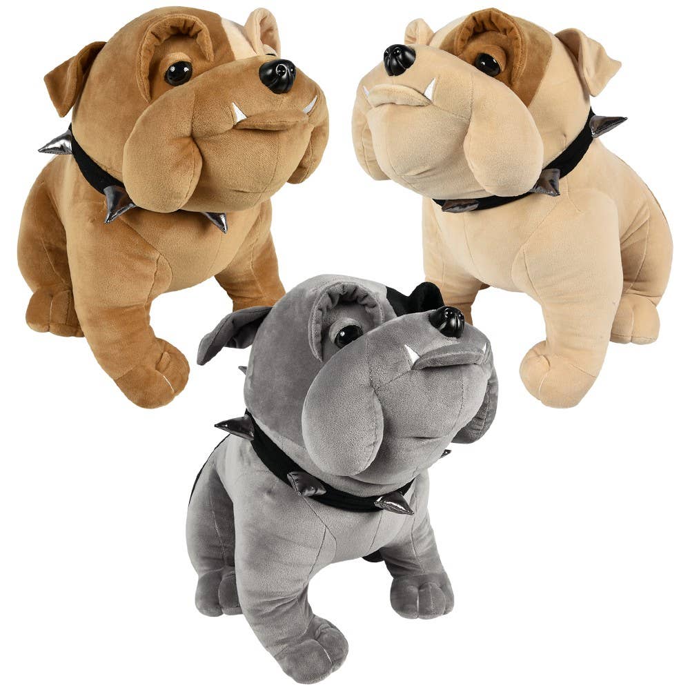 • Detailed bulldog plush with spiked collar