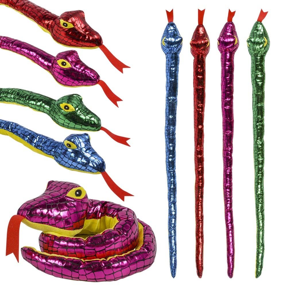 • Plush snakes with shiny foil skin • Great large carnival prize options • Assorted colors • Sold by the piece with a hang tag • Ages 0+