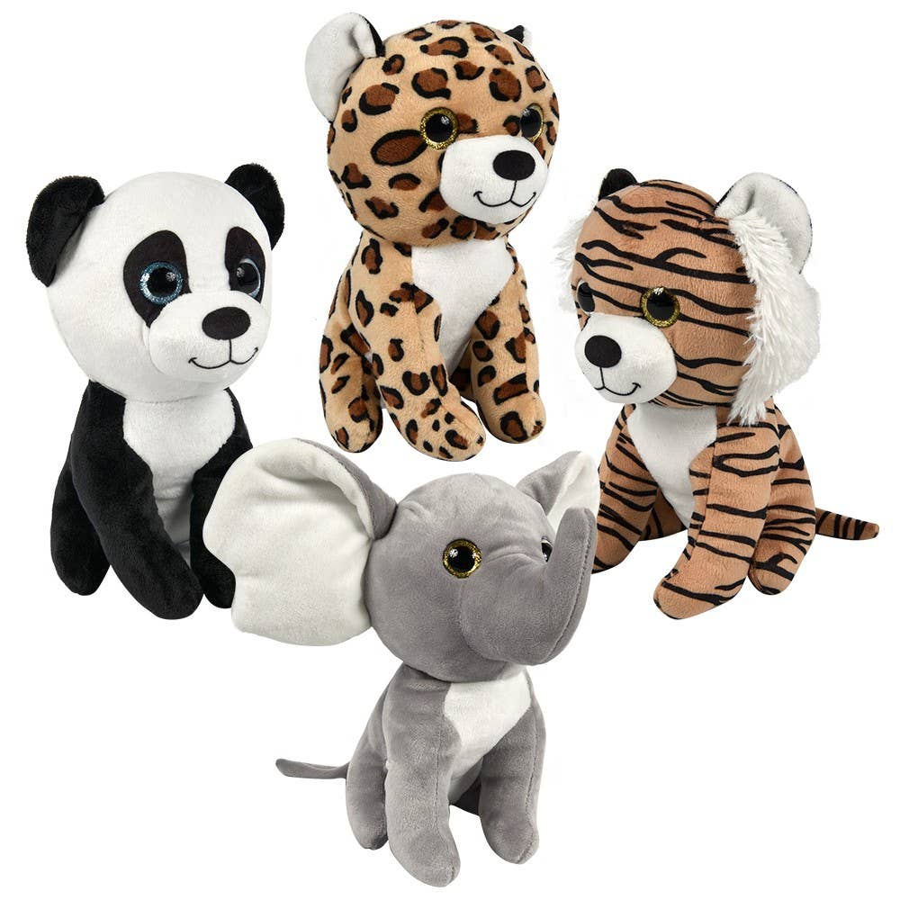 • Each plush features large glittery eyes