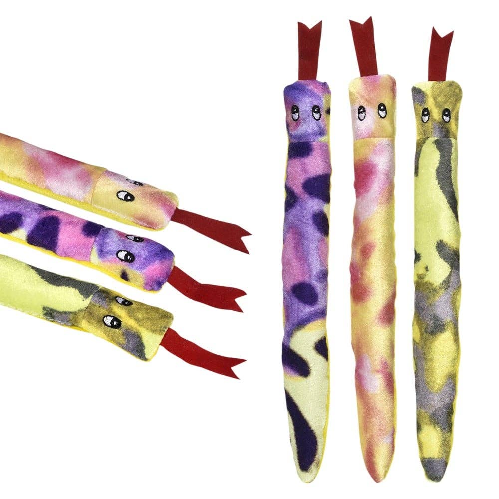 • 12" Snake • Features sewn in eyes and felt tongue • Availlable in multiple colors • Soft stuffed plush • Sold by the case • Ages 0+
