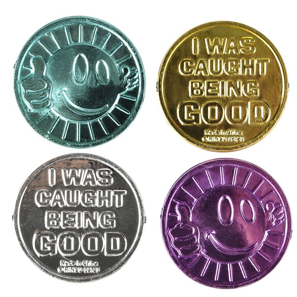 • I WAS CAUGHT BEING GOOD COIN • 1 GR in poly bag • 25 GR in inner box • Fun reward for school events • 144 pieces per unit • Ages 3+