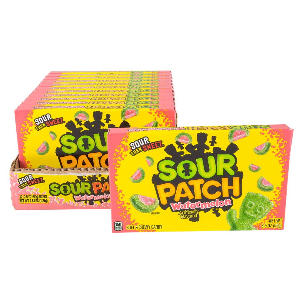 • Sour Patch Kids - Watermelon in theater boxes • 12 pieces per case • Sold by the case • Nonreturnable • Ages 3+