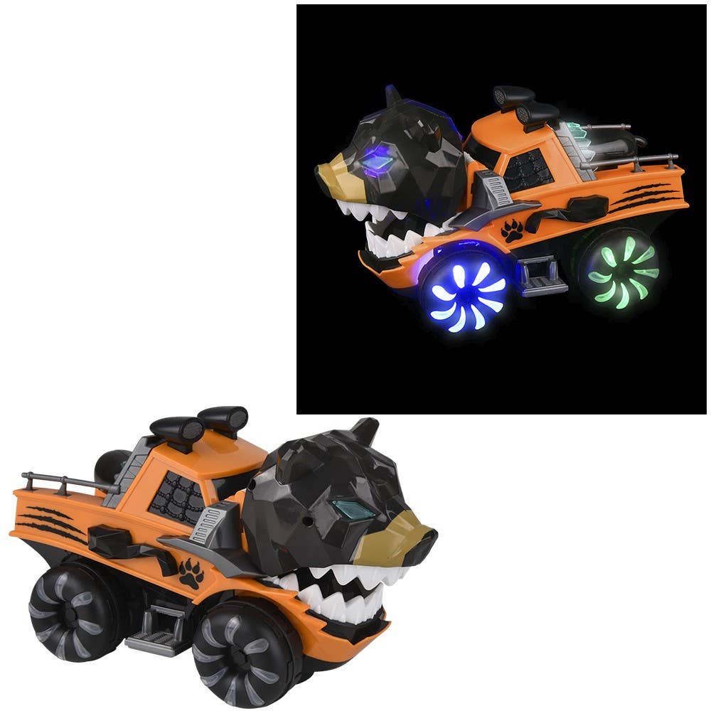 Bear-themed toy truck Features lights and sounds with the press of a button Batteries included and replaceable Sold by the piece in a color box