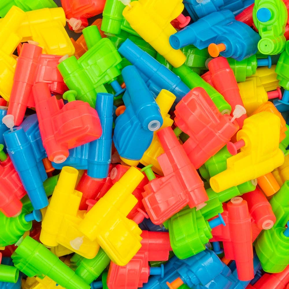 • Variety of mini water squirters in different colors • Assortment may vary • Sold by the gross • 144 pieces per gross • Ages 3+