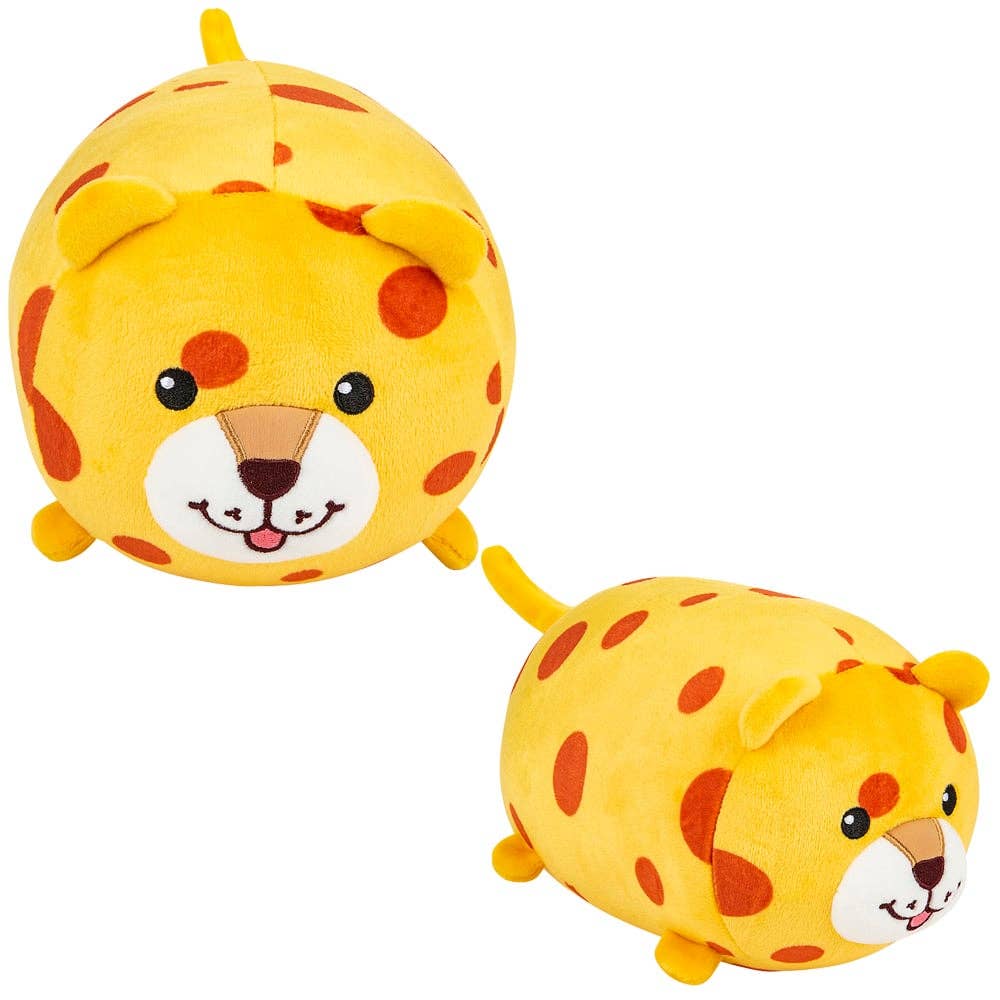 • Round, soft stuffed leopard plush