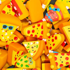 • Mini rubber pizzas in assorted designs