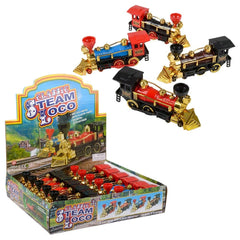 • Die-cast locomotives that feature pull-back for hard surfaces