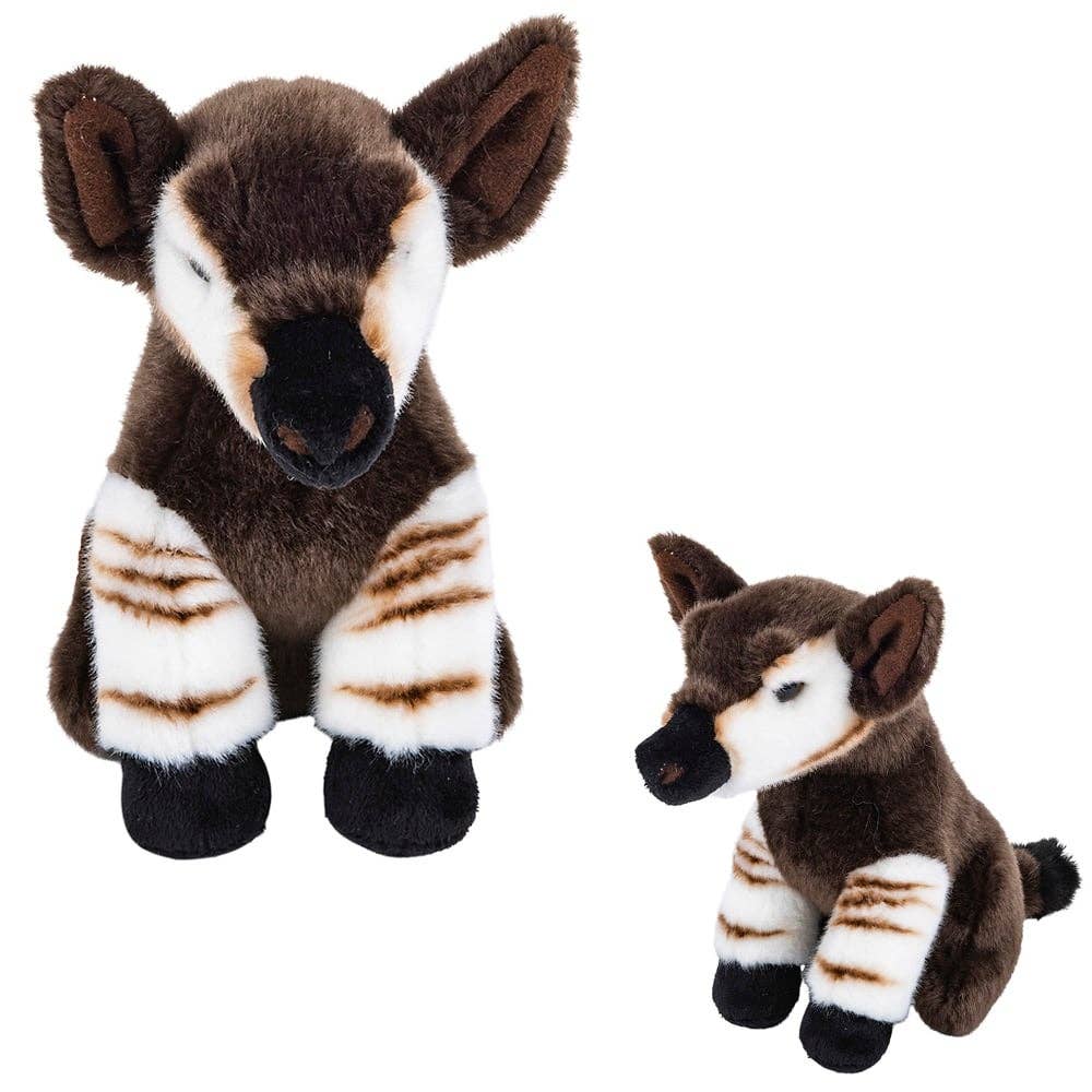 • Okapi plush is covered in incredibly soft fur and has hard plastic eyes