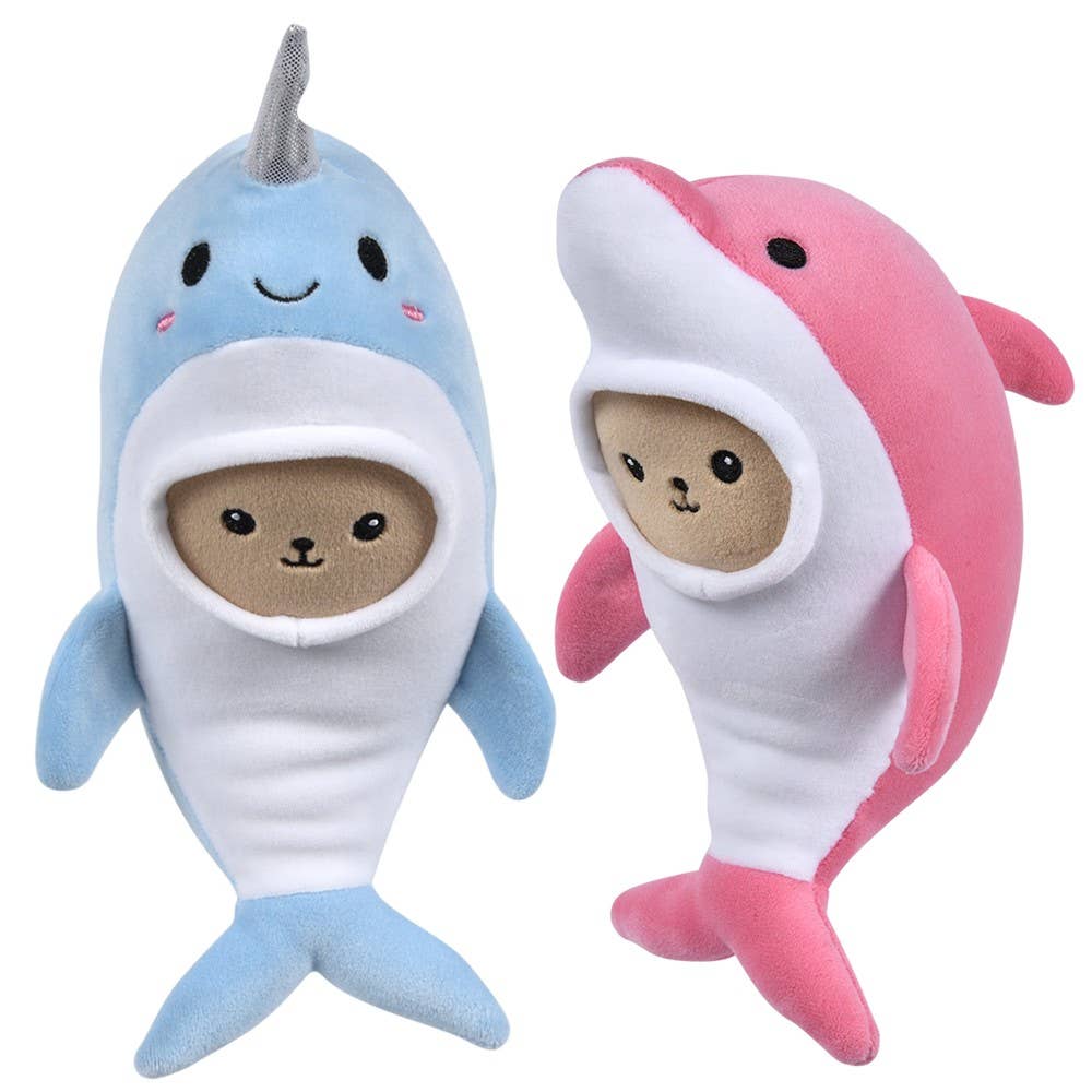 • Cute seal plush dressed in a dolphin or narwhal suit